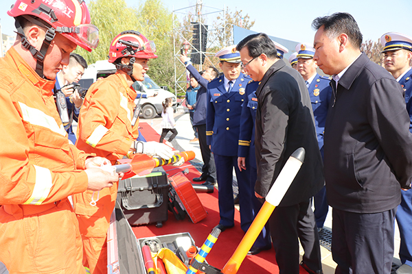 启动仪式上,领导及现场观众一同观看了徐州消防形象宣传片。随后,徐州市人民政府副秘书长丁广州上台致辞,向全市消防指战员及多年来一直关心和支持消防工作的社会各界人士表示亲切慰问和衷心感谢,并简单介绍了该市今年的消防安全工作情况。丁广州强调,要把冬季防火摆在更加突出的位置,全面排查整治火灾隐患;加强消防宣传警示教育,呼吁社会媒体积极参与,加大宣传报道力度,集中曝光重大隐患和典型案例,以曝光促进隐患整改;广泛宣传普及消防安全常识,动员全民共同参与查改火灾隐患,营造人人参与的浓厚氛围。