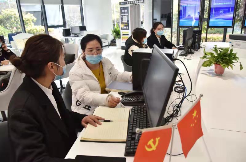 目前江苏淮海科技城企业服务中心,围绕“企之所忧,我之所思;企之所思,我之所行”的为企服务理念,科技城企业服务中心撤销了原先传统的直通型柜台式窗口,转化为包含智能导服区、综合收件区、审批服务区、出件服务区四大功能区的肩并肩服务区,强化板块协同、设置醒目标识、合理安排人员,实现了精准分流、高效审批、综合出件。肩并肩服务区里设有企业服务平台、招商服务平台以及苏科贷服务平台,企业人员可以根据自己的需求到肩并肩服务区进行操作,工作人员会为其全程指导讲解。