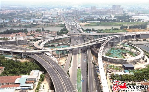 经过一年多的施工,徐州市区唯一一条拥有12条匝道的全向互通立交——秦洪互通立交已雄姿初现。“预计7月底前,秦洪立交主体工程就将完成,8月底前金港路段高架主线主体结构也将完成,今年年底前,徐韩快速路主线即可具备通车条件。”7月5日,负责施工的无锡交建徐韩快速路工程项目部工作人员告诉记者,该工程将新建8条互通匝道桥接入现状立交,与现有的4条互通匝道桥组成全向互通立交。