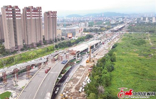 8月23日,8台500吨跟随千斤顶和16台200吨顶升千斤顶启动,三环东路古州飞虹立交桥(简称“东环立交”)西端总重达9680吨的2联6跨钢筋混凝土箱梁开始逐渐上升——三环南路快速化改造工程(简称“南环快速路”)东环高架箱梁顶升工程正式展开。