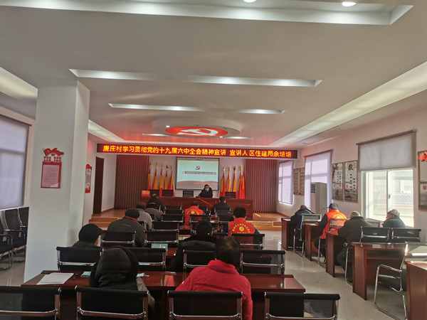 中国江苏网12月30日徐州讯(记者 彭颂珂 通讯员 李建军 俞王锶)为深入学习宣传贯彻党的十九届六中全会精神和省第十四次党代会精神,12月28日下午,徐州市贾汪区住建局宣讲团成员分别深入潘安湖街道唐庄村、权台村、西大吴和荒里村开展党的十九届六中全会精神和省第十四次党代会精神宣讲。