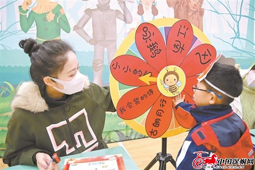 在少华街小学的“绿野仙踪之虎年冒险”中,孩子们转动转盘,选择答题。