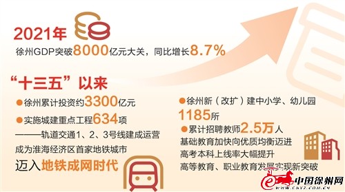 2021年,徐州GDP突破8000亿元大关,同比增长8.7%,经济增速持续好于全国、全省,人民生活水平显著提升,全市经济运行稳中提质,综合实力再上新台阶,淮海经济区中心城市地位愈发稳固,经济辐射能力显著增强。