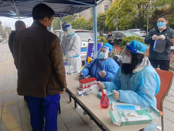 “我们要做到一户不漏、一人不落。没及时检测的居民,我们一户户上楼敲门;行动不便的老人,开展上门检测服务。”刘云说,她和女儿又带了一大包衣服,准备住在社区打“持久战”。(吴云)