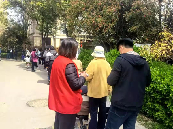 3月31日凌晨2点多,刘云接到了办事处电话,立即集合开会。刘云马上喊醒女儿,两人骑着电动车赶往办事处。长街无人,春寒料峭,平时近半个小时的车程,她们仅用10多分钟就到达了。开完会没顾得上休息,母女俩领了物资又回到社区准备新一轮的核酸检测。