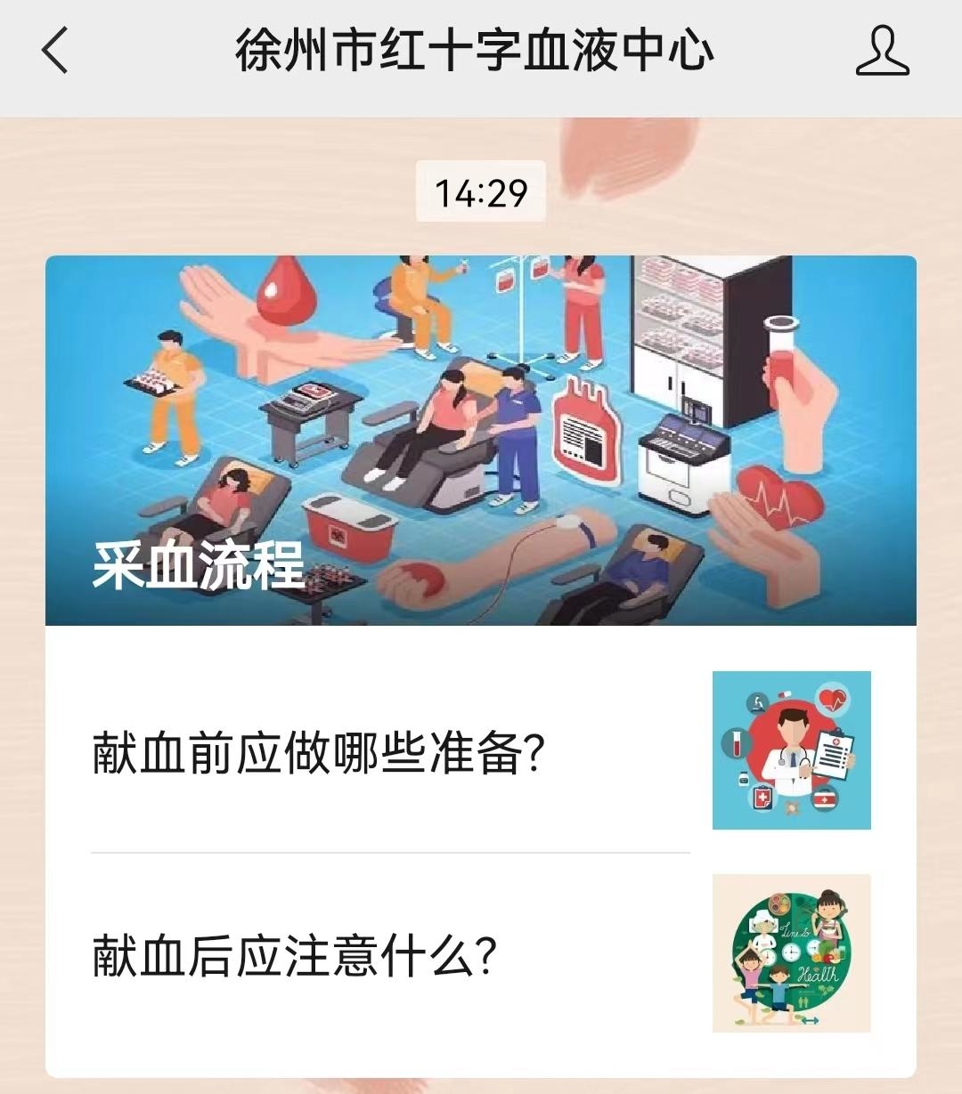 那么,无偿献血前需要注意些什么呢?“大家可以点击徐州市红十字血液中心微信公众号下方的‘发现’,里面有献血科普,包括采血流程,献血前应做哪些准备,还有献血后应注意什么,大家可以提前了解。”徐州市红十字血液中心血源科副科长靖妮说,在这里也向大家表示感谢,感谢您的一臂之力。