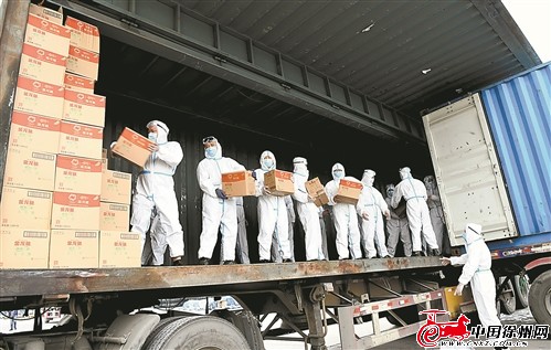 本报讯(记者 季芳)同心战“疫”、并肩奋战、共渡难关,危急时刻,守望相助的力量正在汇聚。4月25日,一辆辆装满食用油的货车载着经开区人民的深情厚谊,驶向睢宁县,这已是徐州经开区援助睢宁的第二批战“疫”物资。