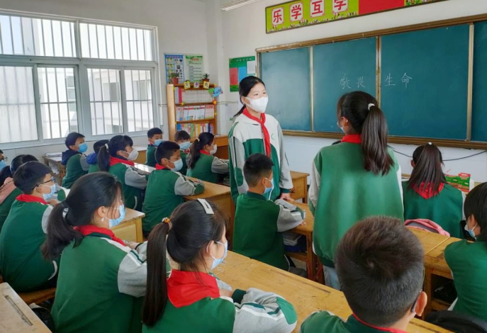 小讲师正在以“敬畏生命”为主题和同学们交流。王莲 摄