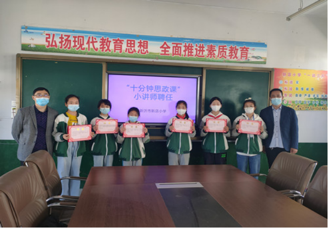 据该校顾校长介绍,自新沂市教育局提出“上好思政课”要求以来,在中心小学张亮校长的亲切关怀和帮助下,新店小学迅速行动起来,群策群力,行动方案逐渐明晰,首先由每个班级择优推荐一名小讲师上报学校,然后学校组织笔试、面试,最终确定六名同学为学校“十分钟思政课”的小讲师,颁发聘书。在经过一段时间的集中培训后,小讲师正式“上岗”。从安全教育到心理健康教育,从疫情防控教育到人生观价值观教育,小讲师们讲起来头头是道,可圈可点,最可贵的是通过平等对话的方式,结合各种活动使学生直观感受思政教育的内容,并在潜移默化中培养了学生正确的思想观念。