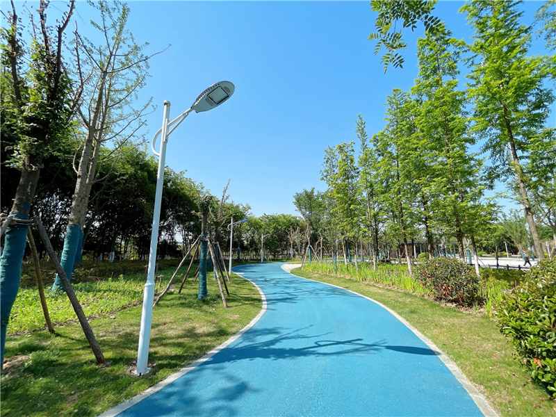 在这次大湖社区公园的提档升级中,通过引入“海绵城市”的设计理念,运用植草沟、渗透性绿地等展现植物季相特色并打造生态植物群落,营造各季花开缤纷的景观效果,让“城市动脉”展现“外在美”,一条条绿道串起城市“大花园”,行走间即可感受城市之美。