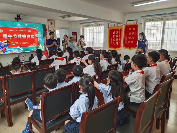 永康社区党委书记郑庆标为孩子们准备了属于他们的“红色大课堂”,从端午节的由来,到端午习俗,引导孩子们深刻感受“红色力量”。“我们要在传承中华传统文化的同时,增强未成年人爱党爱国的意识。”郑庆标表示。