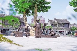 配合浮雕墙,附近还打造了3组互动型铜雕,吸引众多市民来此打卡拍照。