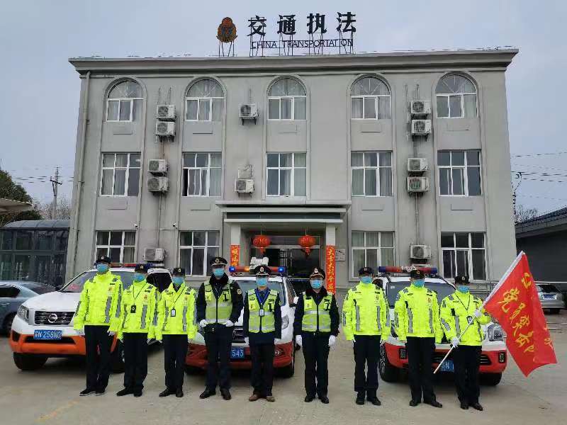 第一大队党支部在接到上级指令时,第一时间派出四名党员骨干队伍前往苏皖省界抗击疫情前沿,参加检查执法。大队负责人潘家前,从年前二十六到初五,一直在大队,放弃了春节的休假,放弃了与家人的团聚,坚守岗位,协调调度大队疫情严防严控工作。