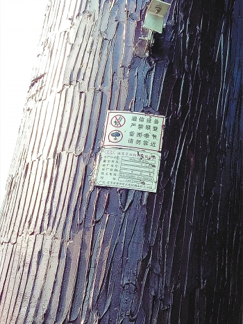 树身上标有“通讯设备”字样。