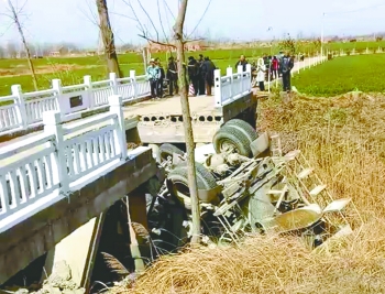响水交警大队大有中队接到报警后,民警立即赶往现场处理,事故地点在七套社区条河村境内。一辆混凝土搅拌车在驶上一座乡村道路桥时,压断了桥梁,翻下了河。这座桥的桥头立有醒目标志,限制8吨以上车辆通过。