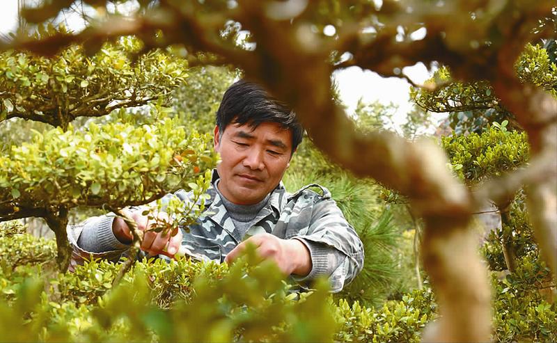 中国江苏网4月7日讯 49岁的胡立春是阜宁县罗桥镇林舍村的一位地道农民,自幼跟随父亲学习盆景制作技艺。上个世纪九十年代,他多次赴扬州、常州、南通等地学习园艺技术。近年来,他利用当地黄杨木资源,培植苗木盆景销往周边地区,走上了发家致富之路。