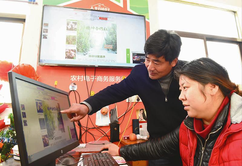 在村淘宝服务站,胡立春通过网络销售苗木。