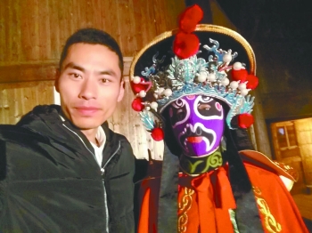 陈庆玉与变脸演员合影。(本人供图)