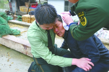 王睿文游到溺水者身边,伸出胳膊抱住了他的腰,拖到船边,因为渔船不稳定,他连续3次都没能把老人推上船,消耗了大量的体力。“可能溺水者出于求生的本能,抓住我就往水里按,来回几次,我呛了不少水。”王睿文笑着对记者说。就在这时,中路港边防派出所副所长盖伟荣也赶了过来,他从居民家中找来一根竹竿,一下子跳到船上,从船舷处将竹竿伸到王睿文面前。王睿文见状,一手抱着老人,一手抓着竹竿,艰难地把老人托上了渔船。