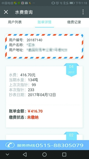 “前一个租客搬走后,我交过一次水费,90多元。”仇先生说,租客是去年11月底走的,去年12月和今年1月的水费是物业通知他去交的。“我当时请物业工作人员帮我看有没有人需要租房子,工作人员就查看了我的水费缴费记录。”为了能把账结清,以便尽快把房子租出去,仇先生在得知自己有90多元的水费没交后,当即通过网络交了。当时他想,可能是前一位租客走之前产生的水费,也没多想就交了。