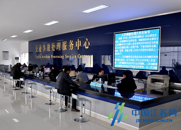 位于盐城市亭湖区小新河路163号的盐城市道路交通事故快速处理服务中心,没有常见的喧嚣和吵闹,气氛始终和谐有序。