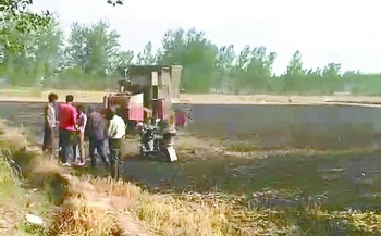 “由于收割时机械声音太大,驾驶员庄文中根本听不到倪广军的呼喊声。”昨天下午,云彩村党支部书记严学军告诉盐城晚报记者。当时,收割机冒出的火苗迅速地将麦子点燃,火仗风势,火苗在麦田迅速蔓延,如果不及时施救,连片50亩待收割的小麦将化为灰烬。