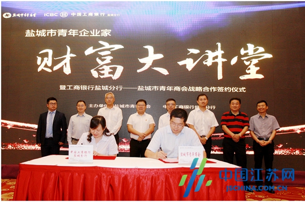 中国江苏网6月29日盐城讯 6月28日,工商银行盐城分行与盐城团市委联合举办“工商银行盐城分行--盐城市青年商会战略合作”签约仪式。期间,该行党委书记陈向东与盐城团市委书记尹同阳就进一步加强合作进行了交流,工商银行总行私人银行部副总经理杨诚信专家作“企业与家业资产隔离”讲座。