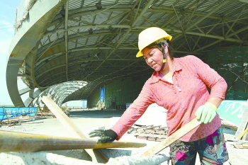 “我们除了像混凝土浇铸工等因工艺需要不可中断的工种外,其余的工人上午最迟11点就肯定下班。”施工现场安全总监蒋飞鸿告诉盐城晚报记者,“早上上班时间我们由原来的6点半提前到5点半,下午室内的延迟到3点钟上班,室外的4点。”“我们所有的工人在上岗前都喝一瓶藿香正气水,绿豆汤、白开水随时供应。工人宿舍我们还安装了空调,食堂供应的饭菜每天都在15个品种以上。”针对当前的高温天气,为避免工人们出现中暑,确保施工顺利进行,T2航站楼项目部除了发放防暑降温药品外,在作息时间上也因地制宜地做了调整,以保障工人们身心健康。