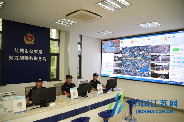 中国江苏网8月9日盐城讯(王柱军 张天鹏)相信经常在聚龙湖畔运动的盐城市民已经注意到了,湖畔西南角附近出现了一座现代的两层小楼——聚龙湖警务服务站。这个全市首座警务服务站里不仅有视频巡逻实战查缉系统、人脸识别系统、车辆查证系统等高大上的智能装置和大数据系统,而且24小时运作,屯警街面,动态巡防,服务市民。