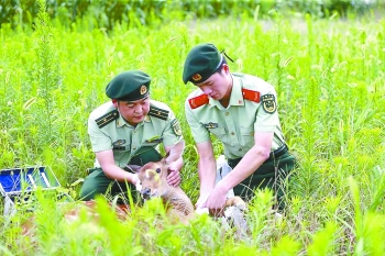 中国江苏网8月22日讯 8月21日,大丰林场惊现一只受伤的野生梅花鹿。所幸边防民警及时赶来进行包扎,并送至野生动物救助部门进一步救治。