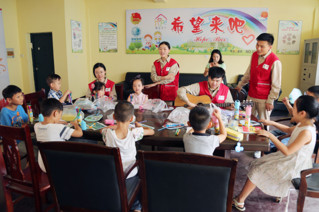 中国江苏网讯 8月19日,国网东台市供电公司青年志愿者再次到富安镇“国家电网希望来吧”,与留守儿童们一起唱歌、绘画、玩游戏,讲解安全用电小常识,向留守儿童发送课外学习书籍、文具用品及安全用电知识画册,让儿童们度过一个愉快、欢乐的暑假,祝他们新学期取得更好的成绩。
