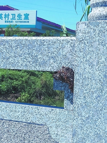 三英村卫生室东侧小桥的桥栏杆上出现马蜂窝。
