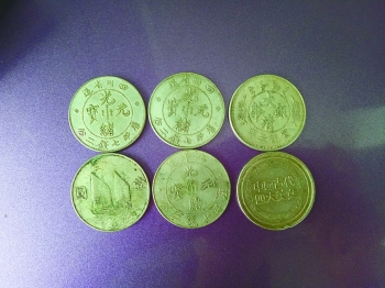 陈梅边给记者讲述,边给记者看带来的银元。其中4枚银元一面有龙的纹饰,另一面分别有“光绪元宝”和“大清银币”字样。其余两枚银币,一枚有“中华民国二十三”的字样,还刻有帆船、人物头像;另一枚则刻有“中国古代四大美女”字样,反面刻有标注为“西施”的美女图案。记者注意到,有的银币上有星点绿色的类似铜锈的东西,拿在手里掂量也比较重。