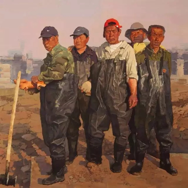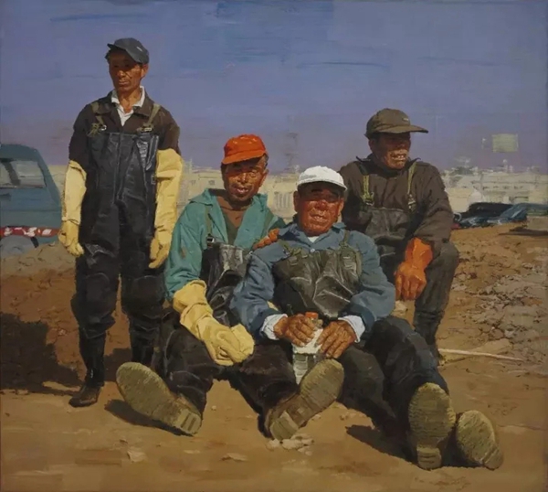 (陆庆龙作品《工闲时分》2009年“第十一届全国美展”油画获奖提名作品)