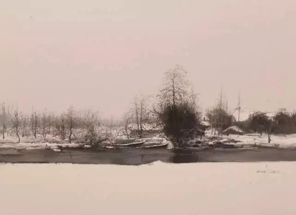 (陆庆龙作品《寒江雪》2014年入选“可见之诗——中国油画风景展”)