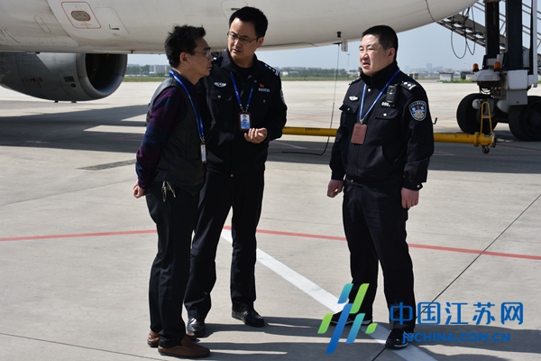 去年8月27日凌晨,机场的工作人员都已换了便装准备下班。就在这时,李磊接到报警称:疑似精神病人徐某为了“躲避几十个人的追杀”,躲到南洋机场候机楼西边一楼厕所旁,慌乱中把消防管道弄坏了,当即“水漫金山”,管道中的水涌入商店仓库。李磊赶到时,积水已有10厘米深。为了减少商家损失,李磊协同机场工作人员紧急抢修水管,并及时转移了商店的库存货物。随后,李磊经身份核查,确认徐某系精神病人。几经查访,终于联系上徐某在响水县的家人,但夜里没有班车,其家人要等到天亮后才能接他回家。