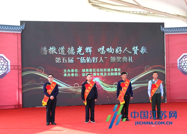 播撒道德光辉,唱响好人赞歌。4月28日下午,盐城市城南新区伍佑街道举办了2018年第五届“伍佑好人”颁奖典礼,对经过推荐、选举的蒋金生、姜冬清、蔡顺成等十位好人代表进行表彰。