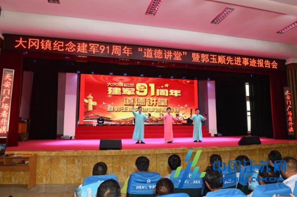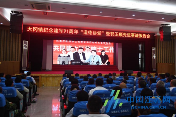 中国江苏网8月2日盐城讯 为庆祝中国人民解放军建军91周年,进一步发扬双拥工作的优良传统,深入开展双拥创建工作,加强和巩固军政军民团结,为推动大冈高质量发展凝聚磅礴力量。8月1日上午,盐城市盐都区大冈镇举行纪念建军91周年“道德讲堂”暨郭玉顺先进事迹报告会。镇党委、政府班子成员、区民政局领导、机关全体党员干部、各村居、部门单位负责人及退役士兵代表450人参加了会议。