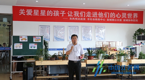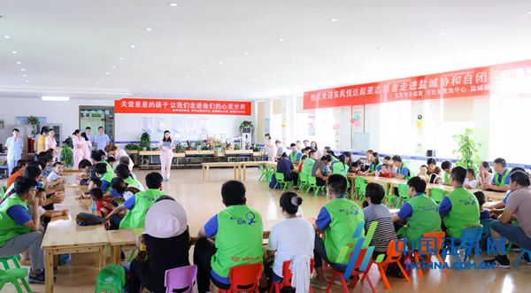 8月14日,由东风悦达起亚、市社会救助中心、盐城微心公益、盐城协和医院联合举办的“让我们传递爱与温暖,给自闭症儿童撑起一片蓝天——夏日甜心”公益联谊活动在盐城协和医院特殊儿童早期干预中心(自闭症康复中心)举行。来自东风悦达起亚汽车有限公司的28名大学生志愿者们与27个自闭症儿童及家长一起做爱心蛋糕、玩梦想通道游戏、抢椅子、画画、做手工,与这些特殊的孩子一起度过了快乐的一天。