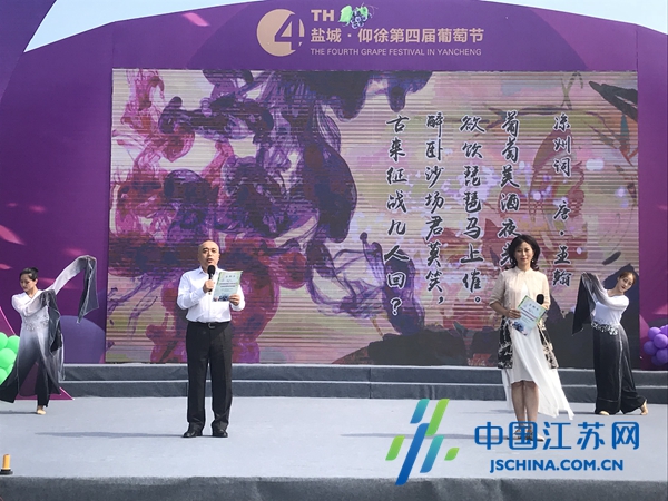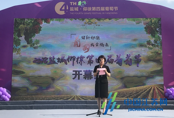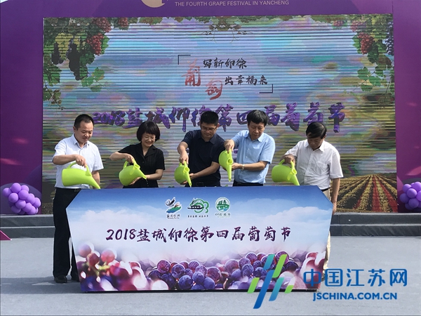 中国江苏网9月8日盐城讯(记者程光)今天上午,以“葡写新仰徐萄出幸福来”为主题的“2018畅游盐都金秋行”之盐城仰徐葡萄节正式和广大游客“甜蜜”相约。盐都区政协主席张建洋,盐都区人民政府副区长刘锐,盐都区政府办公室副主任、外侨办主任吕洪明,潘黄街道党委副书记、办事处主任韦琴,盐都区旅游局副局长张自忠等领导嘉宾出席开幕式。