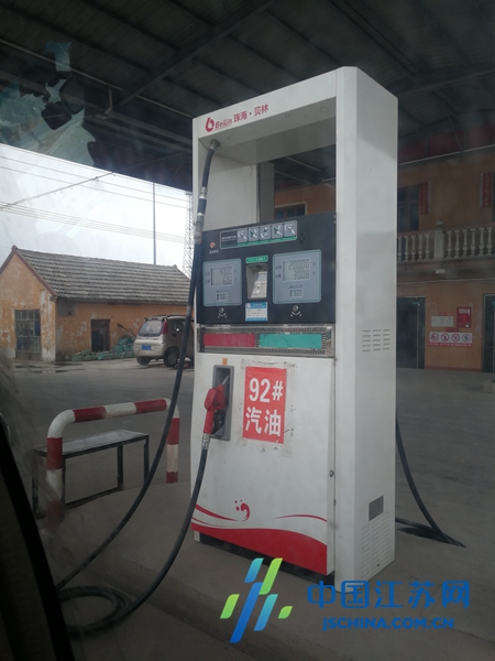 在位于301县道上的一处加油点,92号汽油加油机显示正常工作,一红衣男子走过来称92号汽油6块6毛5。整整比当天的正常汽油价格便宜1元。