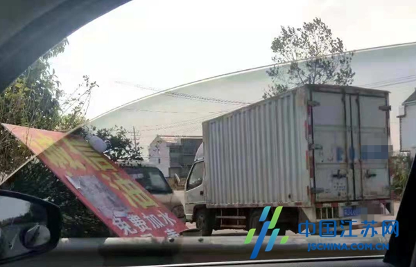 在G228省道3036一一3037路段西侧,一辆牌照为苏J的厢式货车被改装成油罐车,标价同为6块钱一升。