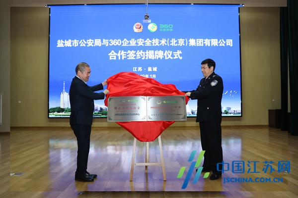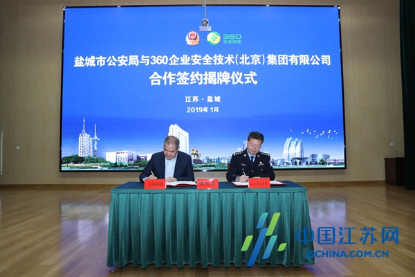 中国江苏网1月21日盐城讯(张天鹏 王一伟)1月19日,盐城市公安局与360企业安全集团签署战略合作协议,共同揭牌成立“大数据协同安全技术国家实验室涉网犯罪预防与打击合作中心”和“网络违法犯罪预防与打击(一带一路)国际合作研究中心”,双方将在保障网络信息系统安全、防范打击违法犯罪、提升公共治理能力等领域开展全面战略合作。