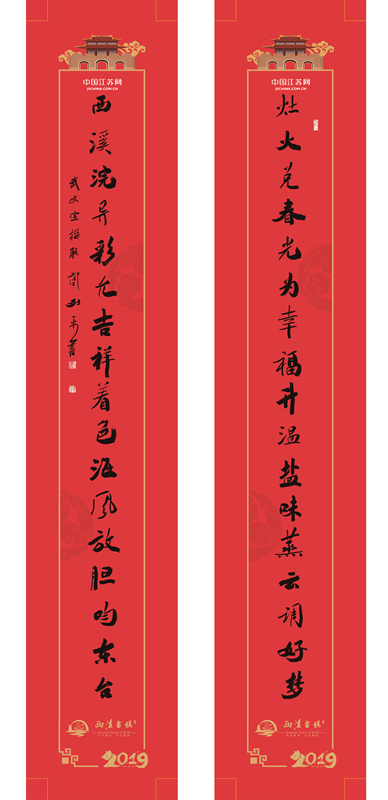 值得一提的是,本次挂春联活动,主办方特意为东台西溪景区量身打造“一门双联”的展示效果,邀请到中国书法家协会理事、行书委员会委员,江苏省书法家协会副主席、秘书长,国家一级美术师王卫军以及盐城市书画院院长、盐城市书法家协会主席、国家一级美术师郭列平书写,分别悬挂于西溪古城和七仙女文化园。