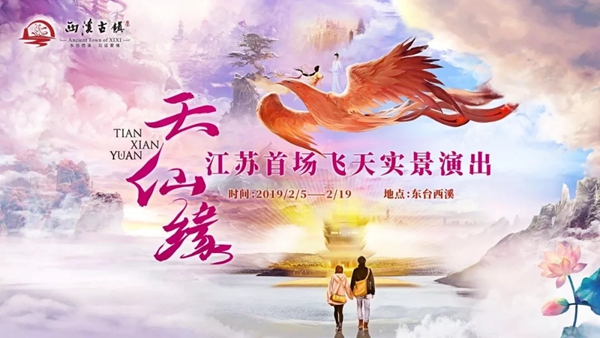 记者获悉,春节期间,东台西溪景区重磅打造了系列活动,其中,最引人注目的当属江苏首场大型户外飞天演出实景秀《天仙缘》。