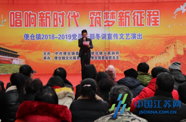 中国江苏网2月20日盐城讯 为加强党员干部教育、推进基层组织建设,2月19日,正值元宵佳节,盐城市亭湖区便仓镇开展了“唱响新时代 筑梦新征程”2018-2019党员干部冬训宣传文艺演出。