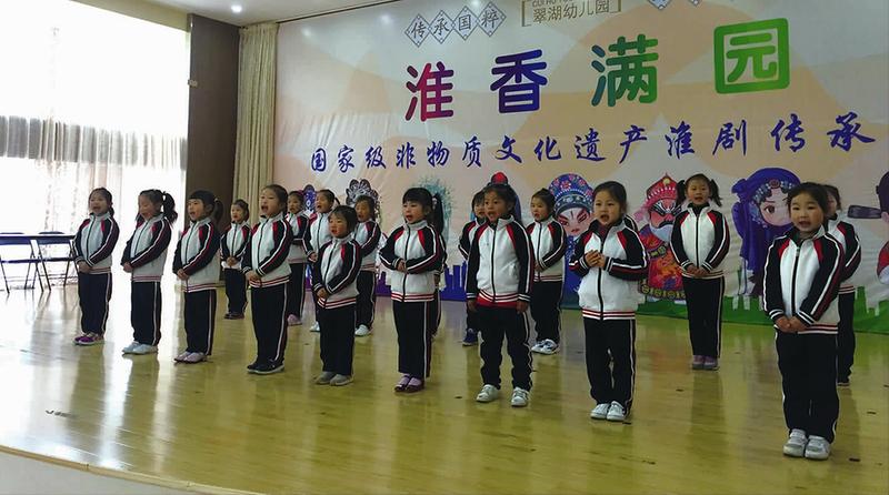 翠湖幼儿园经常邀请淮剧名家进校园,与老师、小朋友面对面交流、互动,同时,开展亲子活动,带小朋友到社区进行淮剧表演。“我们幼儿园从2017年开始在教学活动中融入地方淮剧特色课程,传授淮剧知识,培养幼儿对家乡戏的兴趣,平时积极组织开展丰富多彩的淮剧特色活动,营造师生全员参与的浓厚氛围。”孙娅说,“让幼儿淮歌进校园,在接触、欣赏、表演淮剧的过程中,感受淮剧的魅力,让幼儿能够传承家乡的淮剧文化,培养孩子爱家乡、爱淮剧的情感。”