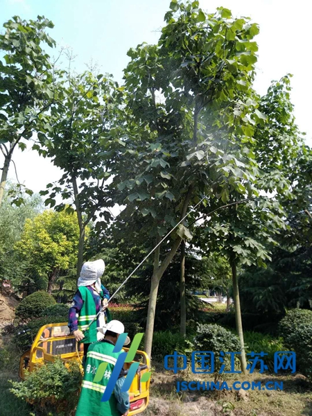 中国江苏网5月24日盐城讯 5月23日一大早晨, 在响水县城双园路有一辆专业喷洒车沿道路缓慢前行,给每颗行道树喷洒治虫药液,由此拉开了该县今夏美国白蛾病虫害防治行动的序幕。