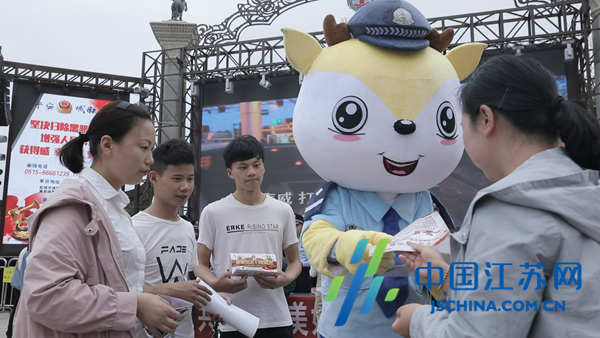 5月16日下午,一个可爱的人偶出现在欧风花街并吸引了不少市民停步观看,还有人主动上前询问。仔细一瞧,原来是盐城公安的卡通形象人物“鹿小警”正在向周围的群众发放扫黑除恶的宣传资料。市民宋先生表示,“萌萌的宠物,女生也喜欢,小孩也喜欢,这种宣传方式很容易深入人心。”生动鲜活的扫黑除恶集中宣传,让群众对扫黑除恶有了更加清晰、直接的认识。