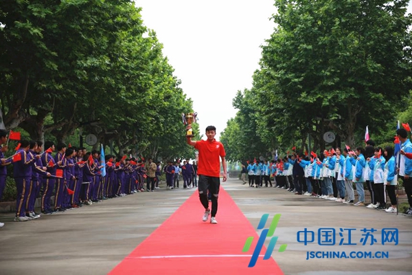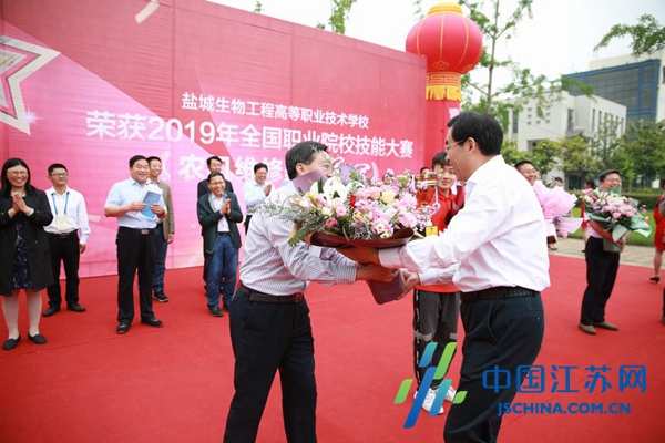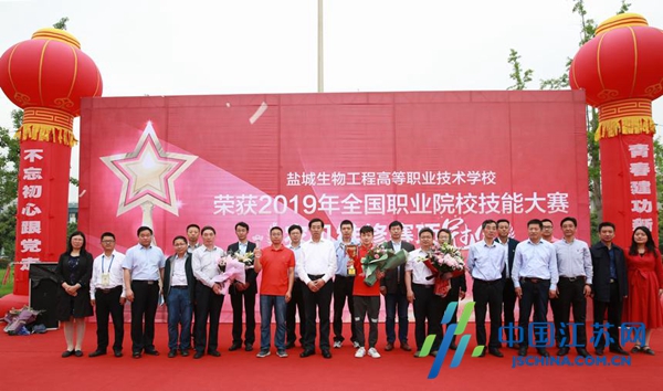 中国江苏网6月3日盐城讯 5月30日,盐城生物工程高等职业技术学校一派喜庆氛围,鲜红的地毯从图书馆一直铺到南大门,全校师生用鲜花和掌声,迎接全国职业院校技能大赛的金牌获得者梁盛宇及团队“王者归来”。
